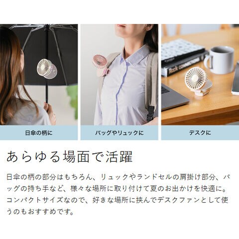 [ コンパクトファン ミニクリ (オーロラカラー) ]ミニ扇風機 クリップファン 扇風機 ハンディ 充電式 USB充電 コードレス クリップ式 ハンズフリー ミニファン 傘 日傘 手持ち コンパクト 小型 軽量 リュック 鞄 バッグ 通勤 通学のレビュー