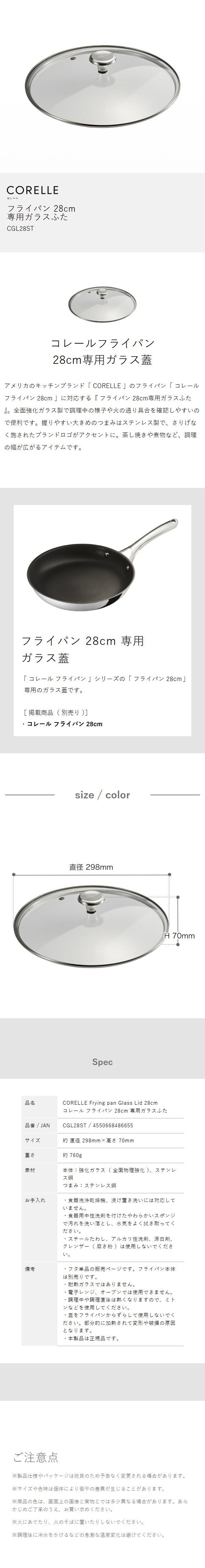 [ Corelle ガラスふた 28cm ]コレール フライパン 28cm 専用ふた 蓋 フタ ふた ガラス蓋 ガラスフタ 中身が見える フライパン用 フライパン蓋 フライパンカバー 調理器具 キッチン用品 強化ガラス キッチンツール 料理道具 シンプル