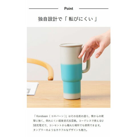 [ Korobaan サーモカラー加湿器 ]加湿器 色が変わる 倒れにくい 吸盤付き コードレス 700mL USB 充電式 超音波式 パーソナル加湿器 タンブラー型 卓上 寝室 リビング オフィス かしつき 加湿機 上から給水 コロバーン