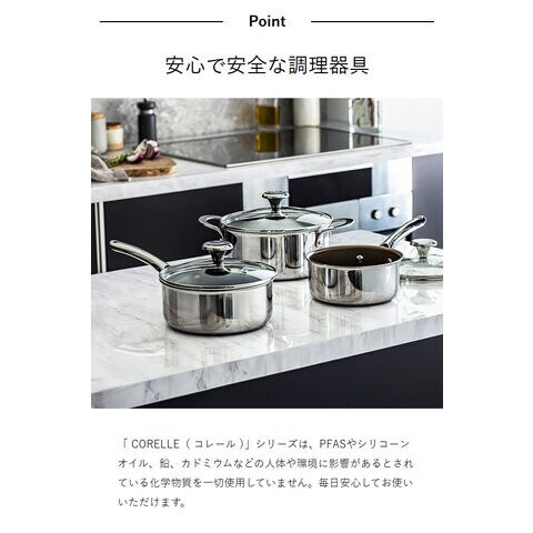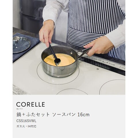 [ Corelle ソースパン 本体+フタセット 16cm ]10年保証 コレール ソースパン 16cm 片手鍋 デュラナノ 長持ち 蓋 セット ガラスふた IH ガス 強火 ノンスティック PFASフリー 食洗機対応 オーブン フタ ドウシシャ DuraNano 長持ち こびりつきにくい