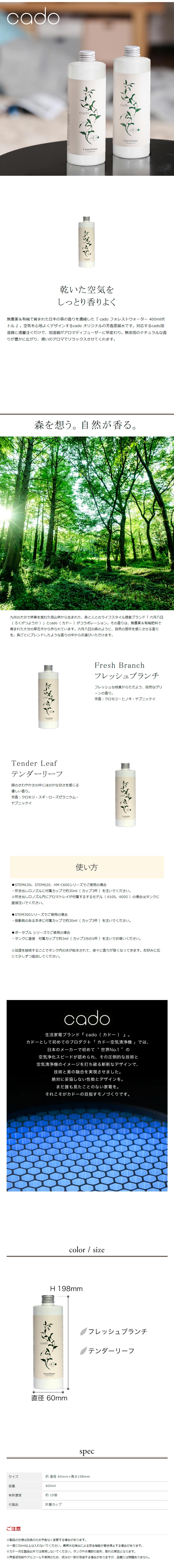 [ cado オリジナル フォレストウォーター 400mlボトル 蒸留水タイプ ]フォレストウォーター 400ml cado カドー 加湿器 アロマ アロマオイル ステム stem HM-C620 HM-C630i HM-C300 対応 オフィス