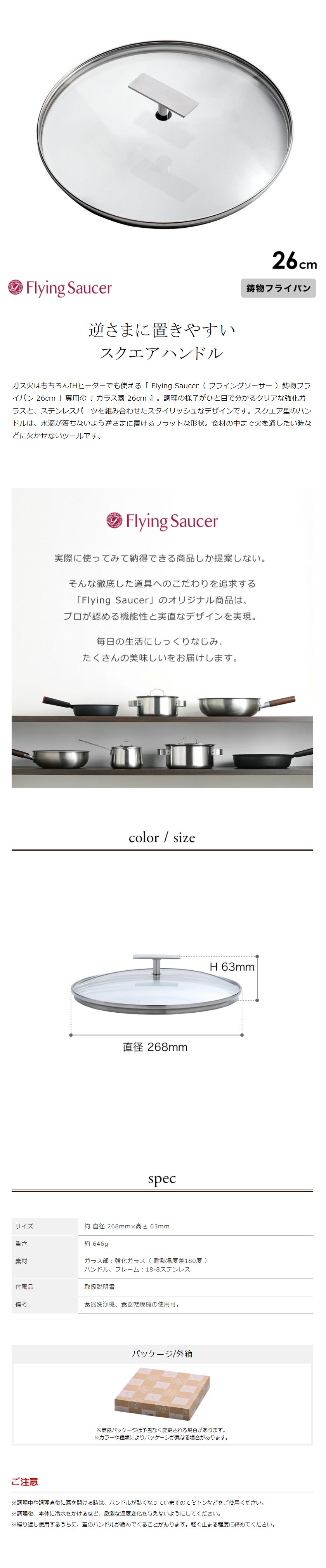 [ Flying Saucer ガラス蓋 26cm ]フライングソーサー 鍋蓋 フライパン ふた ハンドル 鍋ふた なべふた フタ ガラス製 立つ 自立 フライパン用 鋳物フライパン フライパン蓋 強化ガラス キッチンツール 中が見える ステンレス 蒸し焼き 26センチ