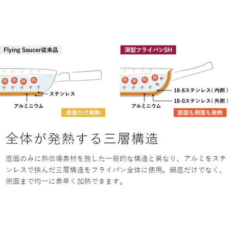 [ Flying Saucer 深型フライパンSH 27cm ]フライパン 深型 27cm 日本製 燕三条 IH IH対応 ガス火 直火 ステンレス フッ素加工 炒め鍋 中華鍋 ウォックパン 焦げ付きにくい 焦げにくい キッチン 調理器具 食洗機対応 プレゼント フライングソーサー