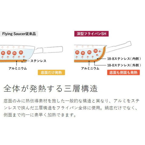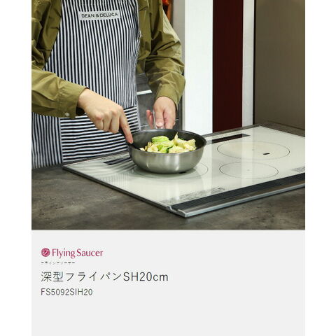 [ Flying Saucer 深型フライパンSH 20cm ]フライパン 深型 20cm 日本製 燕三条 IH IH対応 ガス火 直火 ステンレス フッ素加工 炒め鍋 中華鍋 ウォックパン 焦げ付きにくい 焦げにくい キッチン 調理器具 食洗機対応 一人暮らし フライングソーサー