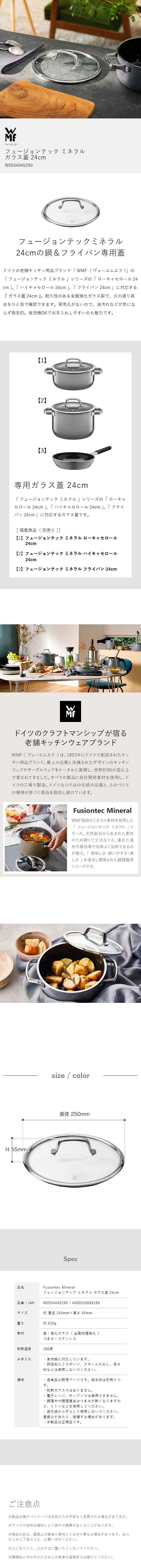 [ WMF フュージョンテック ミネラル ガラス蓋 24cm ]WMF ヴェーエムエフ 交換用 ガラス蓋 24cm 両手鍋 ハイキャセロール ローキャセロール フライパン 鍋蓋 ふた フタ 中が見える ガラス製 部品 スペア 買い替え 強化ガラス 単品