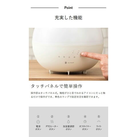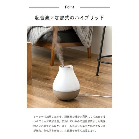 [ Life on Products 抗菌上部給水ハイブリッド式加湿器 LuLuPure hybrid ]ハイブリッド 加湿器 加熱 超音波 コンパクト 3.3L アロマ 上から給水 加湿機 卓上 上部給水 オフタイマー ライト付き 抗菌 据え置き おしゃれ