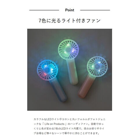 [ Life on Products パールシェルファン LEDライト付き ]ハンディファン 軽量 小型 USB充電式 手持ち扇風機 携帯扇風機 扇風機 LEDライト 七色 熱中症対策 推し活 推しカラー 映え ミニ かわいい ラメ おしゃれ ハンドストラップのレビュー