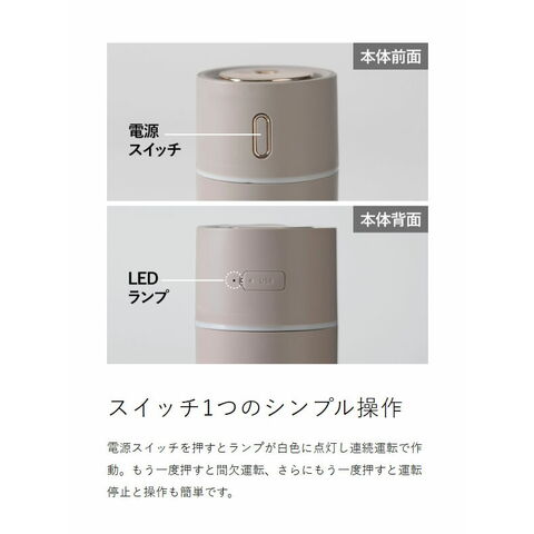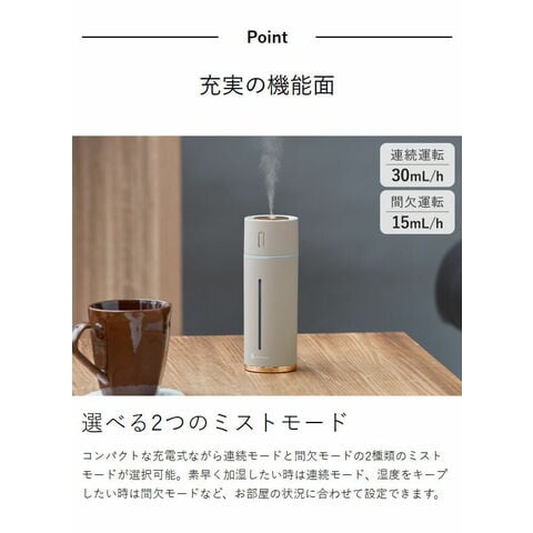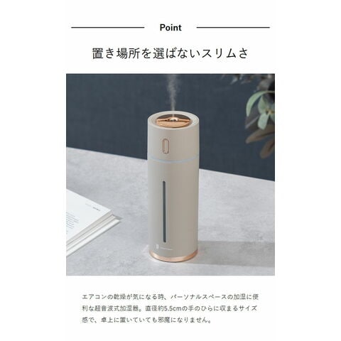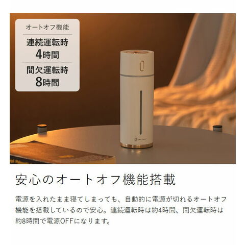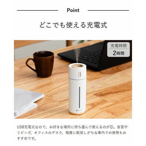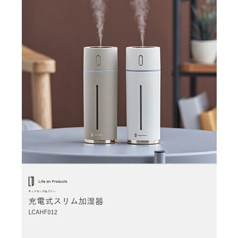 [ Life on Products 充電式スリム加湿器 ]超音波 加湿器 USB 充電 コードレス 倒れてもこぼれにくい パーソナル 150ml 2段階ミスト オートオフ 水漏れ防止 乾燥対策 ミニ オフィス 車内 持ち運び デスク 卓上 かしつき