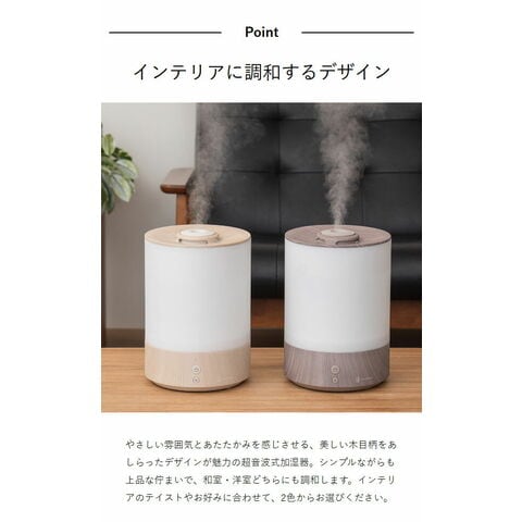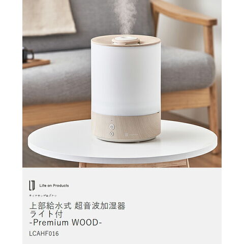 [ Life on Products 上部給水式 超音波加湿器 ライト付 -Premium WOOD- ]上部給水式 超音波加湿器 LEDライト 木目柄 2.5L 間接照明 調光 2段階ミスト 寝室 リビング 空焚き防止 乾燥対策 ライフオンプロダクツ