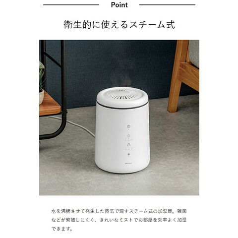[ plusmore 倒れてもこぼれにくいスチーム式加湿器 ]加湿器 スチーム式 プラスモア 大容量 3L 加熱式 蒸気 スチーム 加湿 上部給水 おしゃれ リビング 寝室 卓上 加熱式加湿器 加湿機 小型 お手入れ簡単 安全 子供 ペット