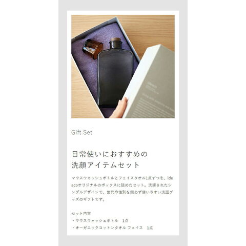 [ ideaco MOUTH WASH BOTTLE & face towel gift ]オーガニックコットン タオル ギフト セット イデアコ 日本製 泉州タオル フェイスタオル おしゃれ マウスウォッシュ マウスウォッシュボトル 吸水 速乾 抗菌 無地 タオルセット 内祝い