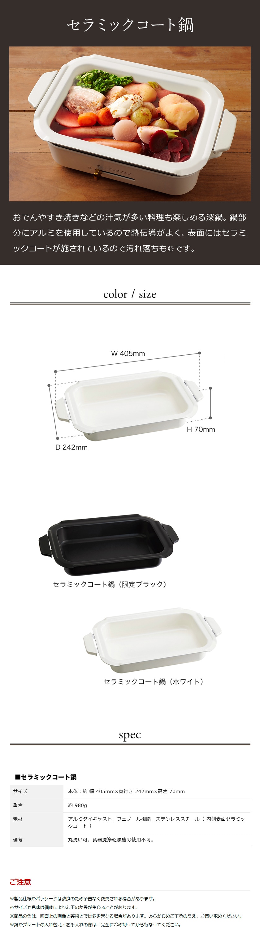 [ BRUNO コンパクトホットプレート用セラミックコート鍋 ]ブルーノ コンパクトホットプレート用セラミックコート鍋 ホットプレート 電気プレート 別売りプレート 別売り 鍋 深鍋 おしゃれ 着脱式