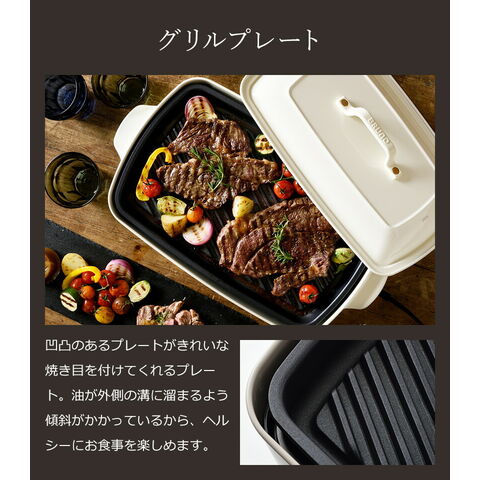 [ BRUNOホットプレートグランデ用グリルプレート ]ブルーノ グランデ グリルプレート 大型 ホットプレートグランデ 卓上グリル グリル バーベキュー 焼肉プレート 焼き肉プレート 電気プレート 焼肉 ステーキ 着脱式 ギフト