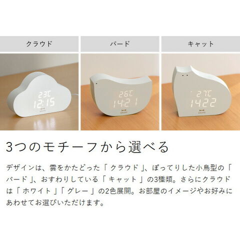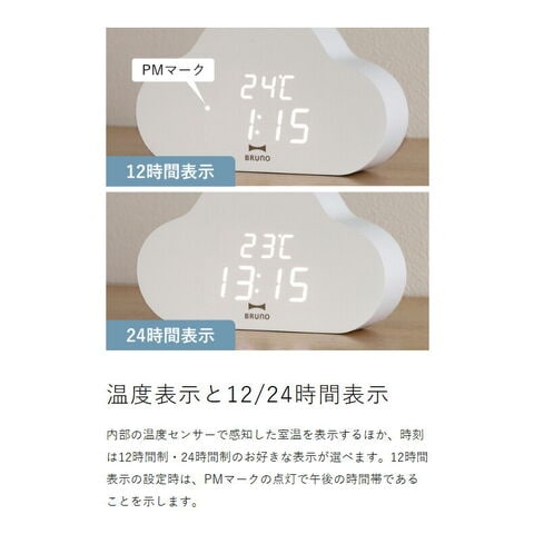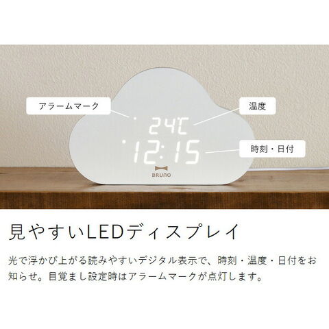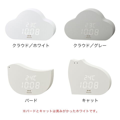 [ BRUNO モチーフクロック ]ブルーノ 置き時計 かわいい 雲型 猫 ネコ 鳥 デジタル アラーム 目覚まし時計 テーブルクロック 日付表示 温度表示 置時計 おしゃれ 時計 寝室 韓国インテリア シンプル 一人暮らし 卓上