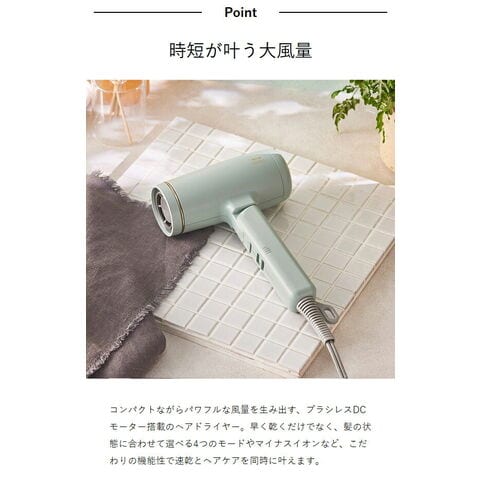 [ BRUNO beauty+ コンパクトヘアドライヤー ]ライヤー ブルーノ ビューティー ヘアドライヤー 大風量 速乾 時短 低温 高速 マイナスイオン 軽量 小型 静音 コンパクト 折りたたみ ヘアケア 美容家電 美髪 冷熱風
