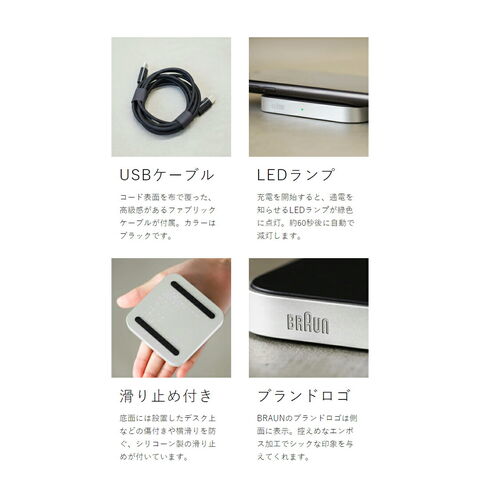 [ BRAUN ワイヤレスチャージャー ]ブラウン 正規品 ワイヤレス充電器 高速充電 Qi対応 MagSafe対応 スマホ充電器 置くだけ充電 スマホ 急速充電 type-c タイプC マグネット対応 おしゃれ Wireless Charger