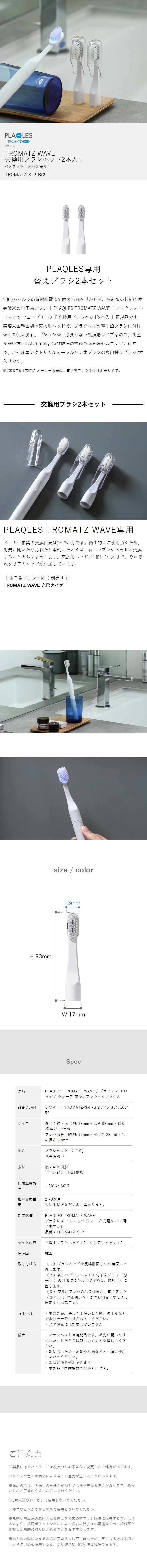 [ PLAQLES 交換用ブラシヘッド 2本入り ]プラクレス 替えブラシ 2本セット 電子歯ブラシ 替え 替え歯ブラシ ハブラシ 2個セット 2本 セット オーラルケア プラークケア 歯周病セルフケア 歯茎ケア 舌苔予防 トロマッツ ウェーブ
