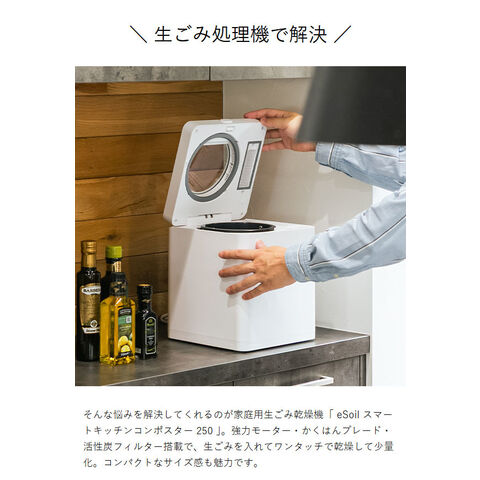 [ eSoil スマートキッチンコンポスター ]生ゴミ処理機 助成金対象 脱臭 自動 静音 2.5L コンパクト 乾燥式 乾燥 粉砕 おしゃれ シンプル 家庭用 キッチン 台所 生ごみ処理機 生ゴミ乾燥機 生ゴミ 生ごみ 消臭 におい ニオイ
