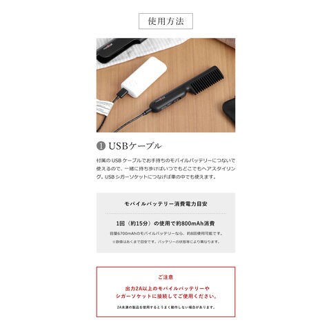[ モッズ・ヘア スタイリッシュ モバイルヒートコーム ]ヒートブラシ ヘアアイロン ケース ストレート ブラシ コンパクト くし モバイルバッテリー 海外対応 旅行 前髪 ヘアアレンジ 携帯用 軽量 持ち運び modshair