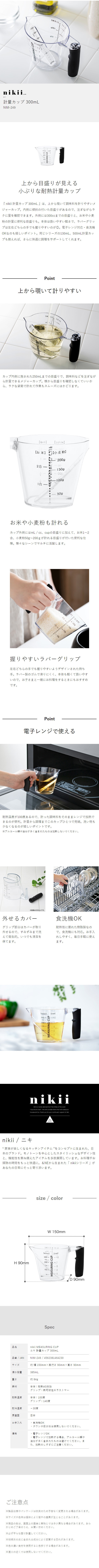 [ nikii 計量カップ 300ml ]計量カップ 300ml レンジ対応 食洗器対応 メジャーカップ 調理器具 キッチン用品 キッチンツール 耐熱 内側目盛り お米 お菓子作り 料理 台所 コンパクト シンプル &NE アンドエヌイー ニキ 日本製