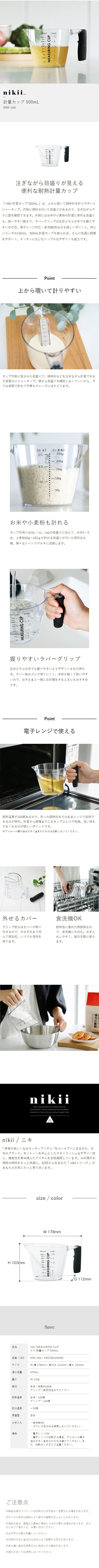 [ nikii 計量カップ 500ml ]計量カップ 500ml レンジ対応 食洗器対応 メジャーカップ 調理器具 キッチン用品 キッチンツール 耐熱 内側目盛り お米 お菓子作り 料理 台所 コンパクト シンプル &NE アンドエヌイー ニキ 日本製