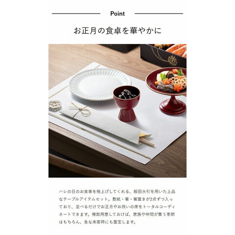 [ &NE ハレとケ 飯田水引 敷紙・箸・箸置きセット ]ランチョンマット 水引 日本製 2人分 国産 敷き紙 テーブルウェア 祝箸 祝膳 使い捨て お正月 迎春 新年 お祝い お食い初め おもてなし テーブルコーディネート 和 モダン おしゃれ アンドエヌイー