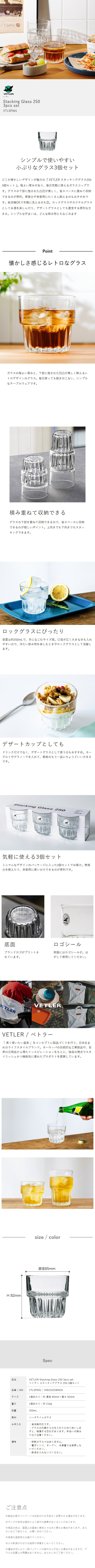 [ VETLER スタッキンググラス250 3個セット ]グラス ガラス タンブラー コップ グラスセット おしゃれ ウォーターグラス ロックグラス カクテル デザートカップ スタッキング 食洗機対応 レトロ カフェ シンプル ベトラー