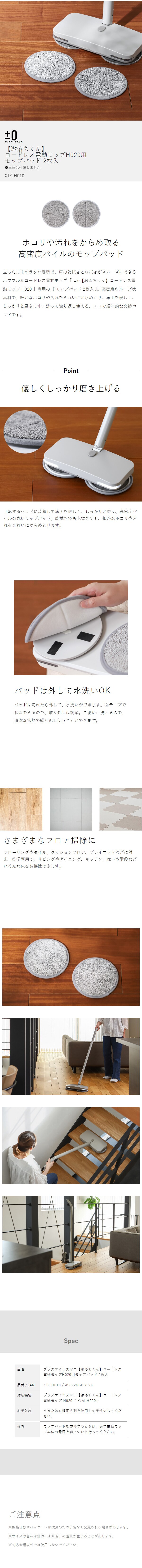 [ ±0 【激落ちくん】コードレス電動モップ H020用 モップパッド ]プラスマイナスゼロ 純正品 コードレス 電動モップ 交換用 モップパッド (2枚入り) 回転 モップクリーナー XJM-H020 対象機種 本体別売 回転 モップ 消耗品 床掃除 フローリング おしゃれ