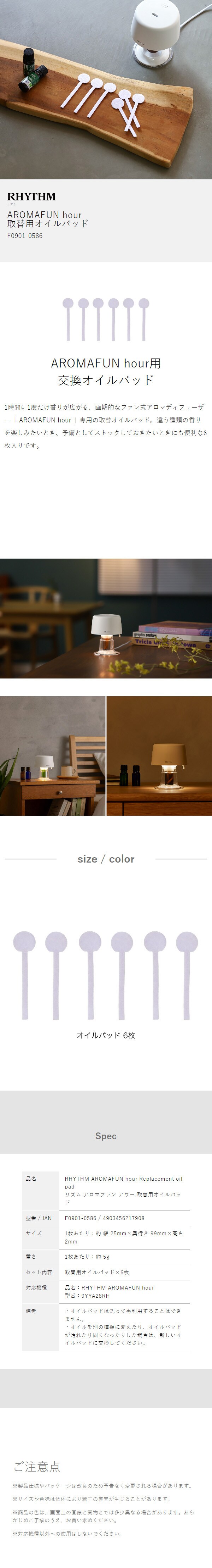 [ AROMAFUN hour 取替用オイルパッド ]アロマディフューザー オイルパッド 6枚組 小型 リズム アロマファン アワー アロマ 水なし オイル 精油 コンパクト 水を使わない ファン式 卓上 ライト ランプ エッセンシャルオイル リビング デスク 寝室 玄関 リラックス 癒し 交換