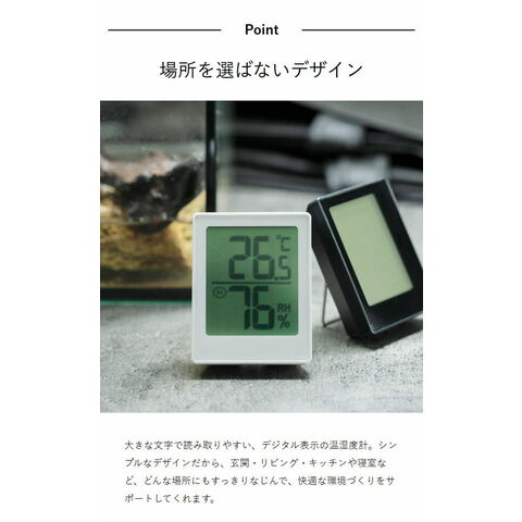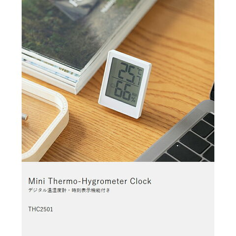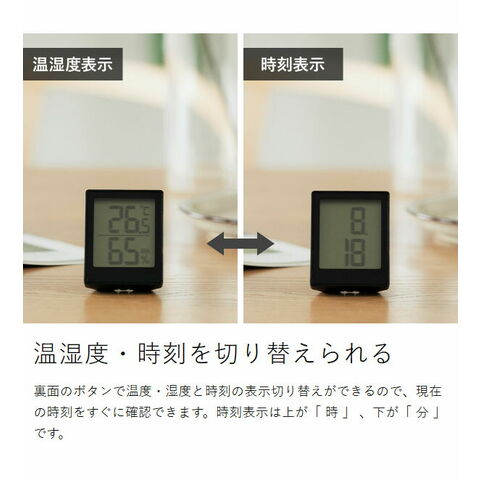 [ Mini Thermo-Hygrometer Clock ]デジタル 温湿度計 時刻 コンパクト 3WAY マグネット スタンド フック穴付き 温度計 湿度計 アイコン 熱中症対策 風邪 インフルエンザ 感染症 乾燥 カビ 卓上 小型 シンプル 手のひらサイズ ミニ 室内 リビング 寝室 子供