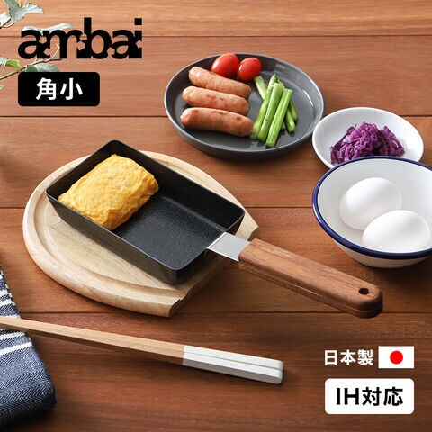 [ ambai 玉子焼 角小 ]卵焼き器 ambai 玉子焼 日本製 IH対応 角小 卵焼き フライパン IH 玉子焼き 玉子焼きフライパン 玉子焼き器 鉄 玉子焼き機 エッグパン 角型 四角 鉄フライパン 15cm 国産 アンバイ 小泉誠 直火対応 丈夫 卵焼 木柄