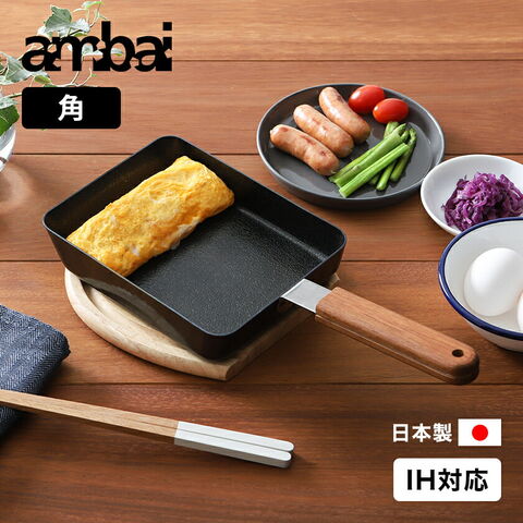 [ ambai 玉子焼 角 ]卵焼き器 ambai 玉子焼 日本製 IH対応 角 卵焼き フライパン IH 玉子焼き 玉子焼きフライパン 玉子焼き器 鉄 玉子焼き機 エッグパン 角型 四角 鉄フライパン 小型 18cm 国産 アンバイ 小泉誠 直火対応 丈夫 卵焼 木柄
