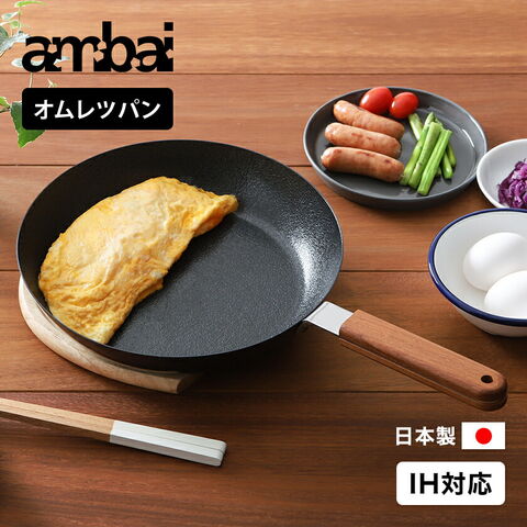 [ ambai オムレツパン ]卵焼き器 ambai オムレツ 玉子焼 日本製 IH対応 卵焼き フライパン IH 玉子焼き 玉子焼きフライパン 玉子焼き器 鉄 玉子焼き機 オムレツパン 鉄フライパン 24cm 国産 アンバイ 小泉誠 直火対応 丈夫 卵焼 木柄