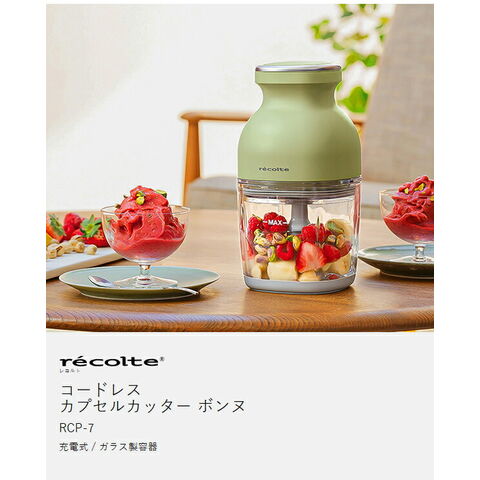 [ recolte コードレス カプセルカッター ボンヌ ]フードプロセッサー レコルト カプセルカッターボンヌ コードレス ブレンダー ミキサー 氷も砕ける 電動 充電式 離乳食 スムージー ガラス 洗いやすい 大根おろし 鬼おろし