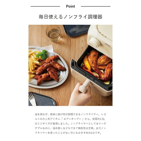 [ recolte エアーオーブン ミニ ]ノンフライヤー レコルト 電気フライヤー ノンオイルフライヤー エアオーブン ヘルシーフライヤー エア フライヤー 家庭用 卓上 唐揚げ 揚げ物 コンパクト 小型 温め直し サクサク てんぷら 油なし 1.5L フライ