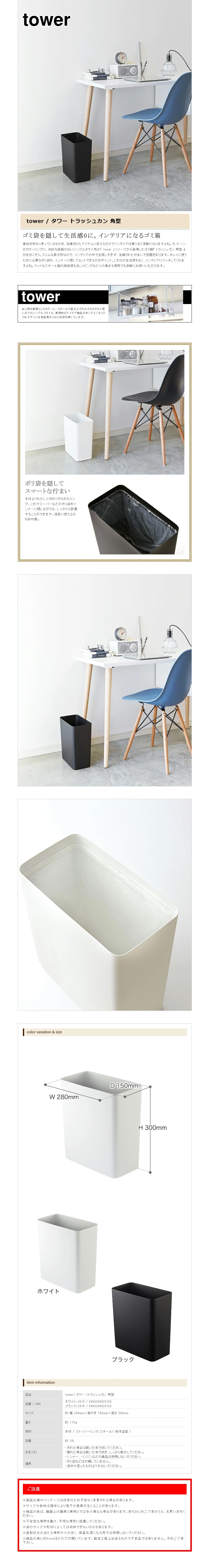 [ トラッシュカン タワー ]山崎実業 tower ゴミ箱 おしゃれ ダストボックス ごみ箱 スリム シンプル 北欧 キッチン リビング ホワイト ブラック インテリア ゴミ袋 隠せる くず入れ くずかご 白 黒 角 四角 スクエア ギフト