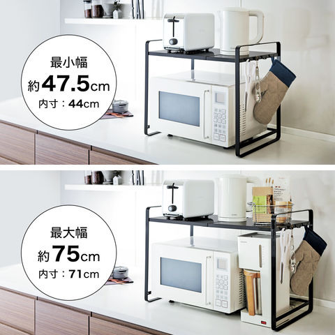 [ 伸縮レンジラック タワー ] 山崎実業 tower 冷蔵庫 レンジ上 収納 ラック 伸縮 キッチン収納 レンジ台 冷蔵庫上ラック レンジ 上 収納ラック 収納棚 60幅 50幅 幅 70cm スライド レンジラック トースター 電子レンジ 公式