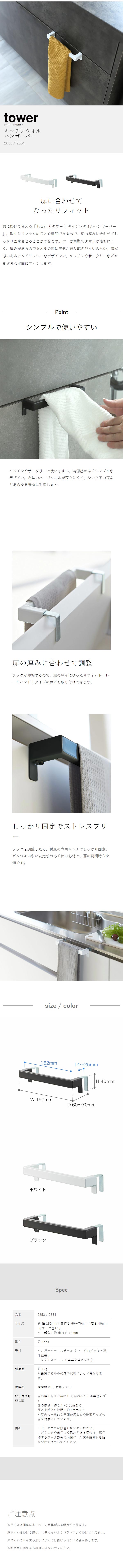 [ キッチンタオルハンガーバー タワー ] 山崎実業 tower タオルハンガー タオル掛け タオル干し ふきん掛け 台拭き キッチン 収納 シンク下 タオルバー 布巾ハンガー 洗面 シンプル おしゃれ モノトーン yamazaki タワーシリーズ 公式
