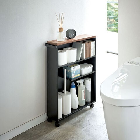 [ ハンドル付きスリムトイレラック タワー ] 山崎実業 tower トイレ収納 ワゴン トイレ 収納 隙間収納 13cm すきま収納 洗面所 スリム ラック