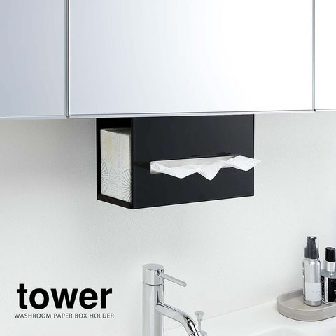 [ 洗面戸棚下ペーパーボックスホルダー タワー ]山崎実業 tower 収納 ティッシュ ボックス ホルダー ケース 吊り下げ 吊り戸棚 洗面収納 サニタリー収納 戸棚下収納 洗面所 脱衣所 キッチン シンプル モノトーン yamazaki 公式