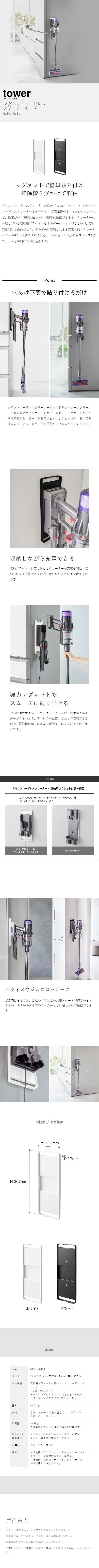 [ マグネットコードレスクリーナーホルダー タワー ] 山崎実業 tower ダイソン対応 ダイソン 壁掛け ホルダー 磁石 掃除機 dyson スティッククリーナー ダイソンスタンド 収納 おしゃれ シンプル yamazaki