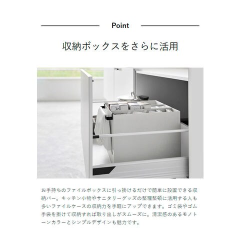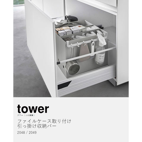 [ ファイルケース取り付け引っ掛け収納バー タワー ] 山崎実業 tower 収納 フック シンク下 洗面台下 吊り下げ 収納ハンガー ごみ袋ホルダー スプレー収納 キッチン収納 掃除用具 小物収納 収納ボックス ファイルボックス モノトーン 公式