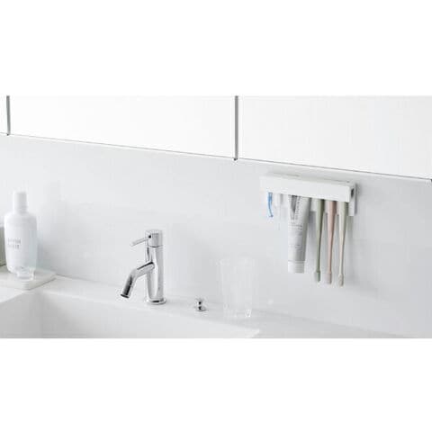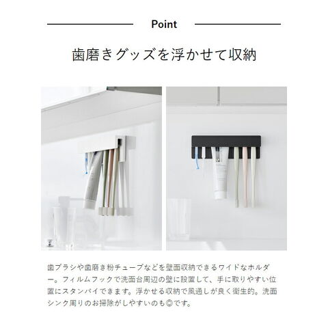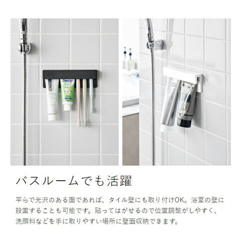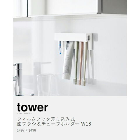 [ フィルムフック差し込み式歯ブラシ&チューブホルダー タワー W18 ]山崎実業 tower 歯ブラシ収納 浮かせる収納 洗面台 浴室 お風呂 バスルーム はぶらし 歯磨き粉 洗顔料 剃刀 カミソリ おしゃれ yamazaki 公式 モノトーン