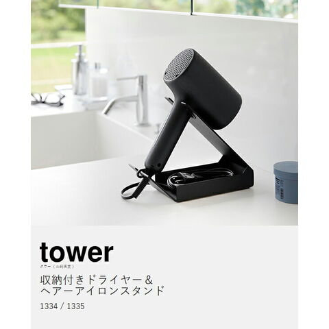 [ 収納付きドライヤー&ヘアーアイロンスタンド タワー ] 山崎実業 tower ドライヤーホルダー ドライヤー 収納 コード ヘアアイロン スタンド コテ ヘアドライヤー 北欧 おしゃれ yamazaki 公式