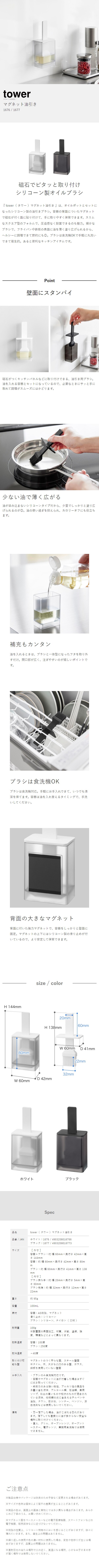 [ マグネット油引き タワー ]山崎実業 tower シリコン 浮かせて取り付け シリコーン キッチンツール 調理器具 オイルブラシ 油ひき ハケ ブラシ 磁石 料理 シンプル 北欧 おしゃれ yamazaki 公式 モノトーン