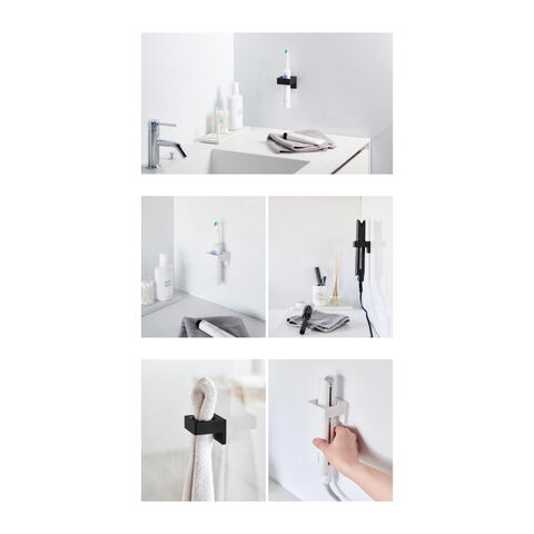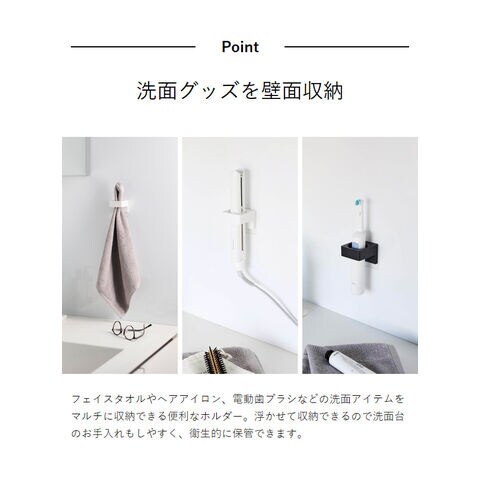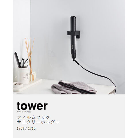 [ フィルムフックサニタリーホルダー タワー ] 山崎実業 tower タオルハンガー 電動歯ブラシ ホルダー 収納 ヘアアイロン 壁面収納 タオルホルダー タオル掛け タオル収納 おしゃれ モノトーン yamazaki 公式