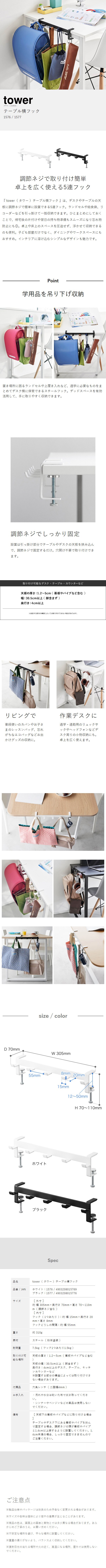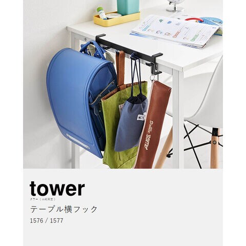 [ テーブル横フック タワー ] 山崎実業 tower ランドセルラック ランドセル 収納 ハンガー 子供部屋 学習机 ランドセルハンガー バッグ掛け フック 掛け 北欧 おしゃれ モノトーン yamazaki 公式