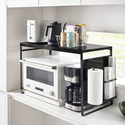 [ スチールパネル付きレンジラック タワー W75 ]山崎実業 tower レンジ上ラック 幅75cm キッチン収納 レンジ台 ラック レンジ上 収納 磁石 棚 オーブンレンジ 台所 電子レンジ シンプル 北欧 おしゃれ yamazaki 公式 モノトーン