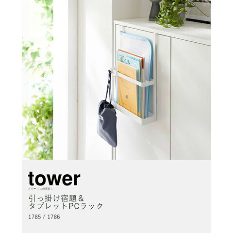 [ 引っ掛け宿題&タブレットPCラック タワー ] 山崎実業 tower タブレット スタンド タブレットホルダー マガジンラック 玄関 扉 引っ掛け収納 壁面収納 北欧 おしゃれ モノトーン yamazaki 公式