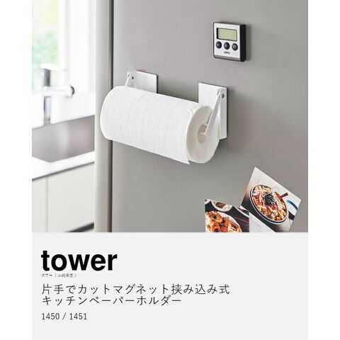 [ 片手でカットマグネット挟み込み式キッチンペーパーホルダー タワー ] 山崎実業 tower キッチンペーパーホルダー マグネット 片手で切れる 磁石 収納 北欧 おしゃれ モノトーン yamazaki 公式